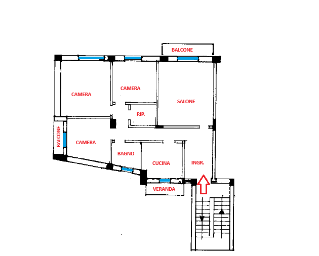 Via Vaccaro (intersezione Via Da Vinci - Viale Dante) appartamento al piano quarto di mq 116 commerciali (netti 100) ai quali si aggiungono mq 2 di veranda, mq 7,5 di balconi e mq 6 di soffitta. L'abitazione si compone di: ingresso, ampio salone, cucina abitabile, tre camere, bagno, ripostiglio, veranda, due balconi e soffitta. L'esposizione su tre lati gli conferisce una buona luminosità e visuale. Termoautonomo, con finiture risalenti all'epoca della costruzione.