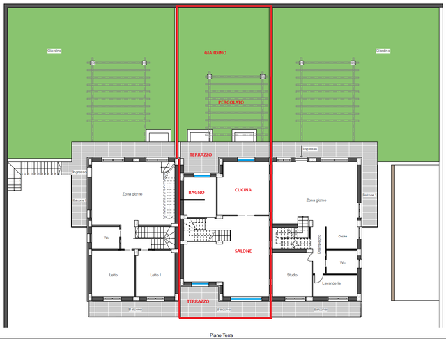 Via Londra (Zona G) Villa di mq 300 commerciali (250 netti) ai quali si aggiungono circa mq 60 terrazzi, mq 100 di piazzale antistante e mq 100 di giardino retrostante. L'unità abitativa si sviluppa su tre livelli: il piano seminterrato è composto da garage e tavernetta; il piano terra è composto da una ampia zona giorno con cucina, soggiorno e servizi; il piano primo è composto dalla zona notte che accoglie tre camere da letto, due bagni ed un vano guardaroba. Completano l'abitazione il vano sottotetto e le pertinenze esterne. L'immobile viene venduto allo stato grezzo, completo di murature esterne coibentate ed intonacate, copertura coibentata, infissi già installati e divisori interni già realizzati. (predisposta per la classe energetica A/3)