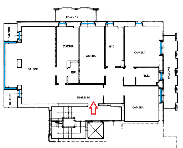 Viale Marconi, appartamento di mq 130 lordi (netti 115) ai quali si aggiungono mq 13 di balconi. L'abitazione è composta da: ingresso, ampio salone, cucina, ripostiglio, tre camere, due bagni e 4 balconi. Posta al quarto piano con ascensore in un fabbricato interamente ricostruito nel 2000, gode di ampia visuale ed elevata luminosità. Termoautonomo, in ottime condizioni.