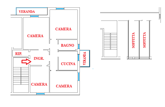 Piazza Vittorio Emanuele II (ovvero Piazza XVIII Agosto) alle porte del centro storico, appartamento di mq 129 commerciali (netti 95) ai quali si aggiungono 10 mq di verande e 24 mq di soffitte, composto da ampio ingresso, quattro camere, cucina abitabile, bagno, ripostiglio, due verande e due soffitte. L'immobile ha doppio ingresso piano - 1° da Piazza Vittorio Emanuele II e piano 5° da via Vespucci. Panoramico e luminoso. Rifiniture risalenti all'epoca della costruzione, riscaldamento centralizzato con contabilizzazione autonoma.