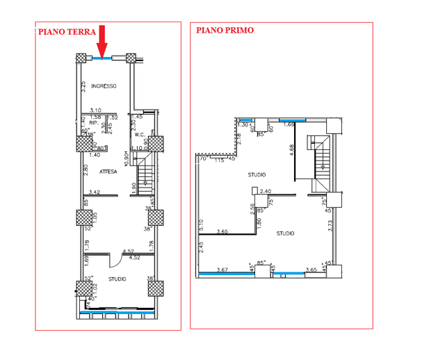 Via Tirreno (Cooperativa Sirio) Ufficio/studio professionale mq 155 commerciali (netti 125). L'ufficio si sviluppa su due livelli collegati da scala interna. Piano terra (60 mq): ingresso, sala d'attesa, bagno, ripostiglio e due camere; Piano primo (65 mq): due ampie camere di lavoro all'occorrenza divisibili ulteriormente. Termoautonomo.